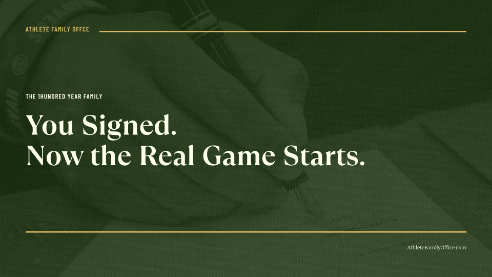 Most importantly, it keeps the player and the family — not the dollars — at the center of every decision. The money becomes a tool that serves the life you are building together, rather than a scoreboard that quietly starts calling the shots.